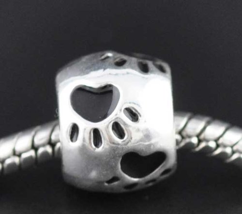Black Paw Print Pattern - Silver Plated Spacer Charm Bead - fits Pandora, Chamilia etc style Bracelets - SpangleBead