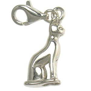 An elegant sitting cat charm in Sterling silver. The charm is 3-dimentional and solid, measures 3.6 cm in length and weighs approximately 3.73 grams (both measurements include the clasp).