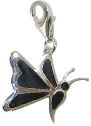 Chrysalis Sterling Silver Ladies' Butterfly Charm Black Enamel