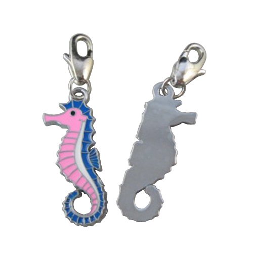 Seahorse Pink and Blue Metal Clip on Charm Bead