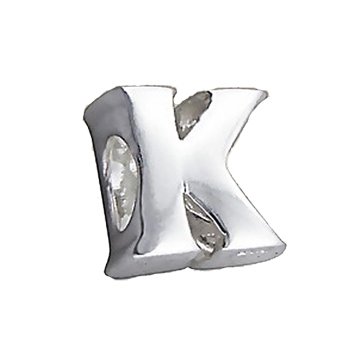 Believe Beads © 1 x Initial Letter K Solid Sterling Silver Stamped 925, Slide On slide Off Charm Bead. Will fit pandora, Troll Chamilia style charm bracelets. Height 8.5mm. Width 8.5mm. Type - Silver Beads Material - 925 sterling silver Approx. Weight - 1.6 G Finishing - Sterling silver+E-coat Description - Initial K bead