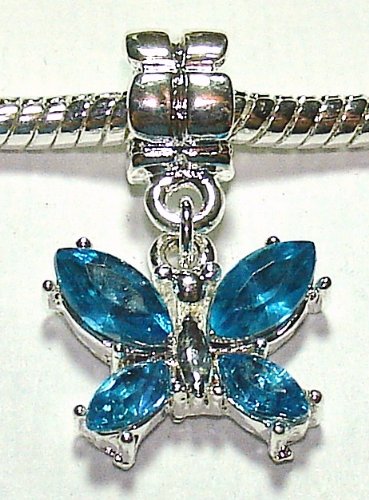 Blue Crystal Butterfly - Silver Plated Charm Bead - fits Pandora, Chamilia etc style Bracelets - SpangleBead
