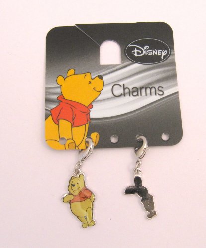 Two bracelet charms, on with a colourful Winnie The Pooh the second a plain silver Piglet, both charms have Disney stamped on the rear.