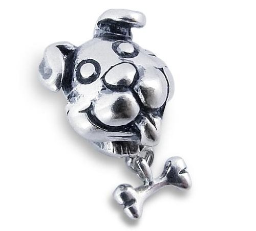 Dog and Bone Sterling Silver Bead (Suitable for Standard Size European Bracelets) 11.8mm x 10.4mm (5mm hole). Supplied in Gift Pouch