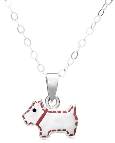 Adorable Scottie dog pendant from the Jo For Girls collection. Made from sterling silver and featuring a pink enamel collar, this cute Scottie dogs is looking for a good home!