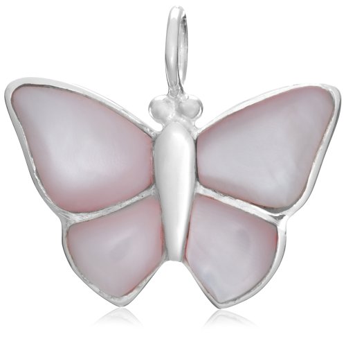 Silver Pink Mother-of-Pearl Butterfly Pendant