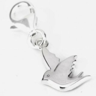 Sterling Silver Dove Clip On Charm. The symbol of peace. This ever popular design is compatible with all charm bracelets designed to take clip on charms. We usually dispatch our products within one working day of your order for fast delivery and it will be supplied in an organza pouch.