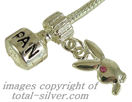 Cute Playboy style RABBIT dangle bead. Fits Pandora and other brands of 3mm charm bracelets