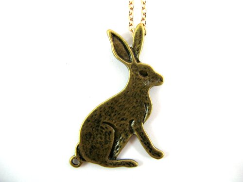 Vintage Brass Rabbit Pendant Gold Plated Necklace (22 inch)