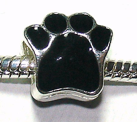 Paw Print / Black Enamel - Silver Plated Charm Bead - fits Pandora, Chamilia etc style Bracelets - SpangleBead
