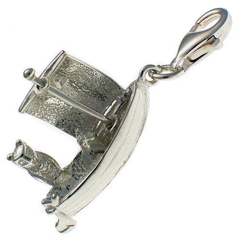 Fine craftsman made, Sterling 925 Silver clip on lobster catch charm or pendant, made in the UK. The Owl and the Pussycat went to sea in a beautiful pea green boat, after the poem by Edward Lear. Length of drop is 35mm. Suitable for Welded Bliss, Thomas Sabo and all other charm bracelet systems. Supplied in gift pochette. Also suitable as a pendant.