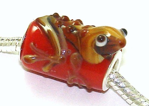 Lizard / Red Glass - Silver Plated Charm Bead - fits Pandora, Chamilia etc style Bracelets - SpangleBead