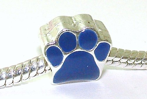 Blue Paw Print - Silver Plated Enamel Charm Bead - fits Pandora, Chamilia etc style Bracelets - SpangleBead