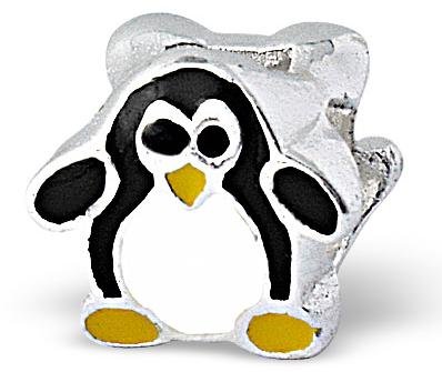Sterling Silver Black and White Penguin Double-Sided Bead (Suitable for Standard Size European Bracelets) 11mm x 10.5mm with 4.5mm Hole - Supplied in Gift Bag